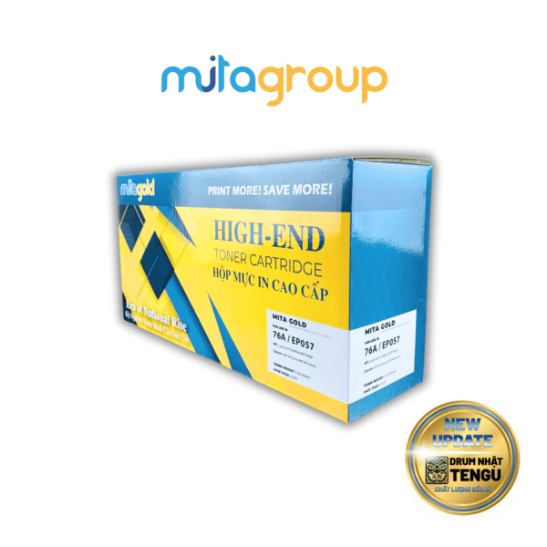Mực in 76A là lựa chọn hàng đầu cho các dòng máy in HP và Canon hiện đại. Sản phẩm nổi bật với tốc độ xử lý dữ liệu nhanh và ổn định. Mita Group giới thiệu phiên bản nâng cấp Mita Gold 76A / EP057 New. Đây là giải pháp in ấn đột phá tích hợp cụm Drum TENGU Nhật Bản. Sản phẩm mang lại bản in chuyên nghiệp với độ sắc nét hoàn hảo.